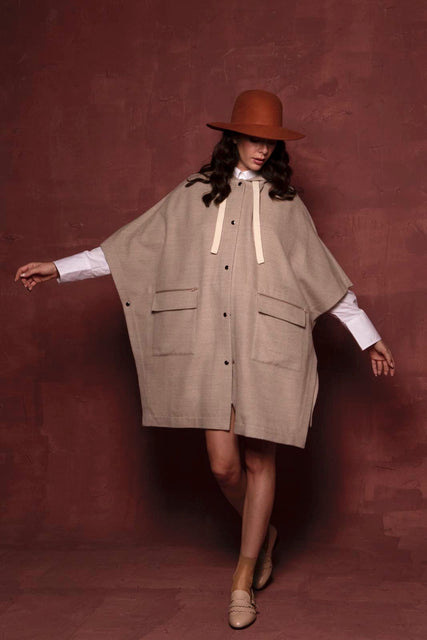 Elegante Capa Silueta Poncho confeccionado en Baby Suri Alpaca y Lana merino de Perú.